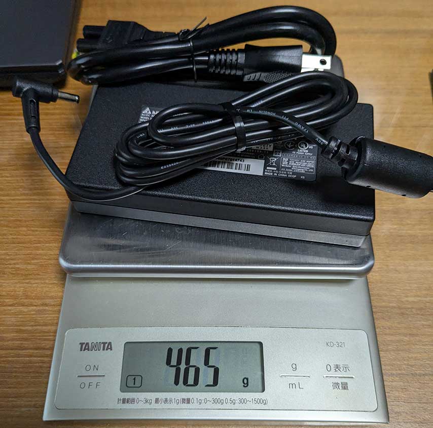 GPU搭載で電力を食うため想定内ではありましたがとにかく大きいのです。こんなにごついACアダプターを見るのも20年ぶりくらいかもしれません。